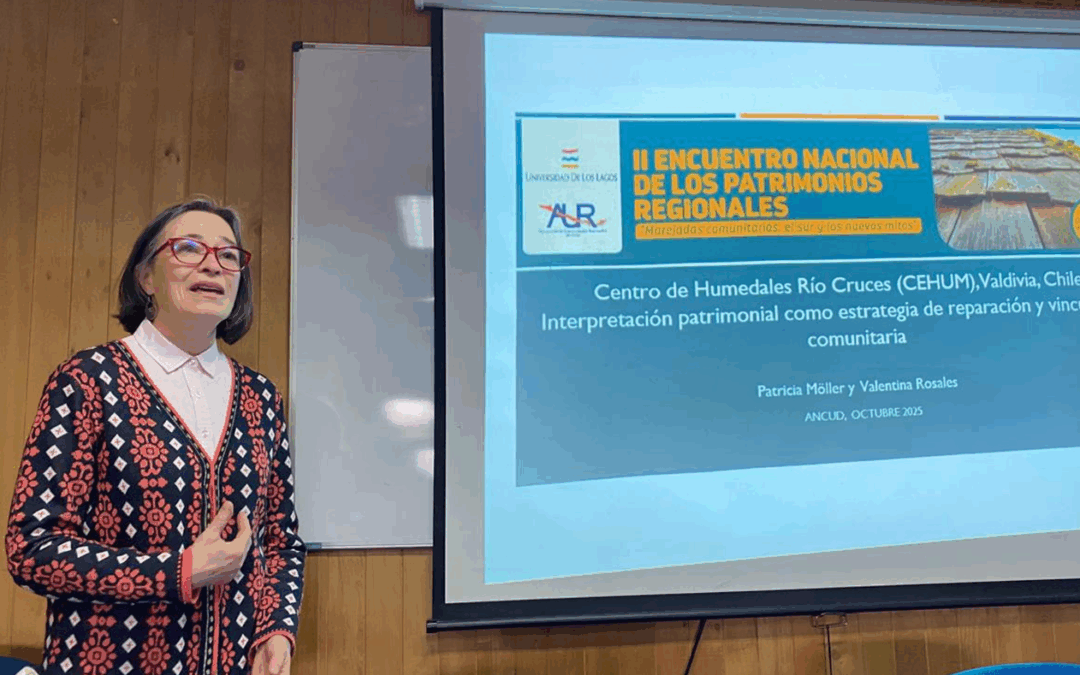 Con la ponencia “Centro de Humedales Río Cruces: Interpretación patrimonial como estrategia de reparación y vinculación comunitaria” realizada por Patricia Möller y Valentina Rosales, estuvimos presentes en el II Encuentro Nacional de los Patrimonios Regionales desarrollado entre el 1 y el 3 de octubre en la sede Ancud de la Universidad de Los Lagos.