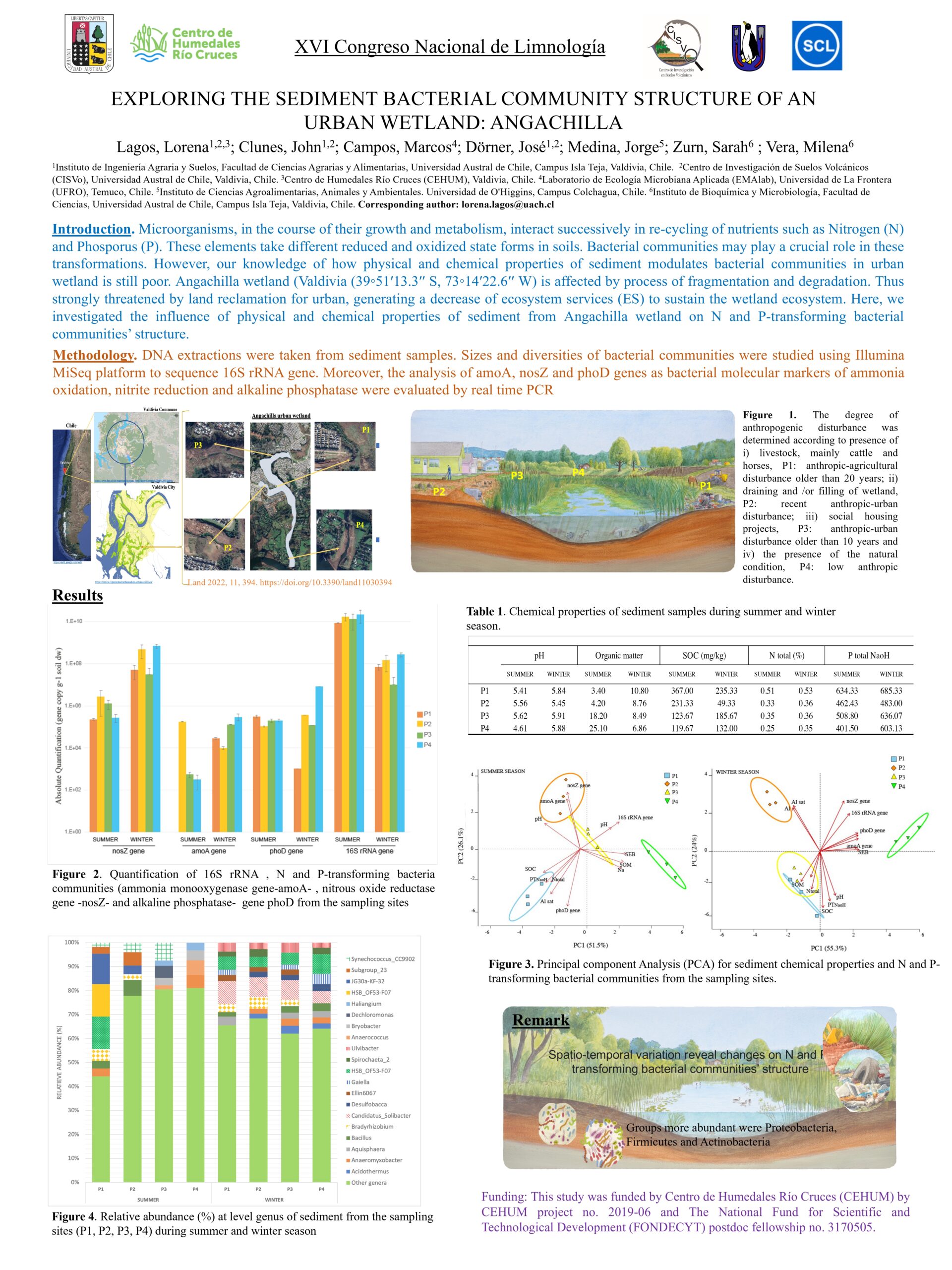 Este poster fue presentado en el XVI Congreso Nacional de Limnología y analizó la calidad de sedimentos en el Humedal de Angachilla. Resultado de los fondos de investigación del CEHUM 2019.